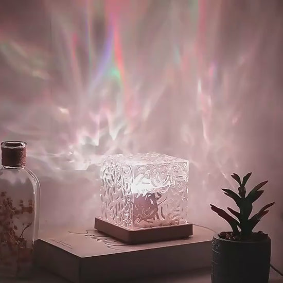 A crystal-clear cube design with swirling LED lights that dance like wavesโyour space will never look boring again! -